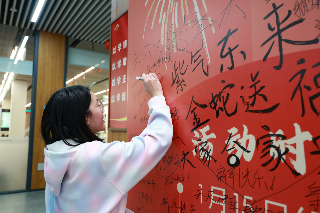 活动现场“祝福墙”,市民纷纷驻足留言,用真挚的话语传递对家人的思念与对未来的期许。市民李先生感慨道:“活动太棒了,不仅有春联,还有非遗福字,很有年味!”