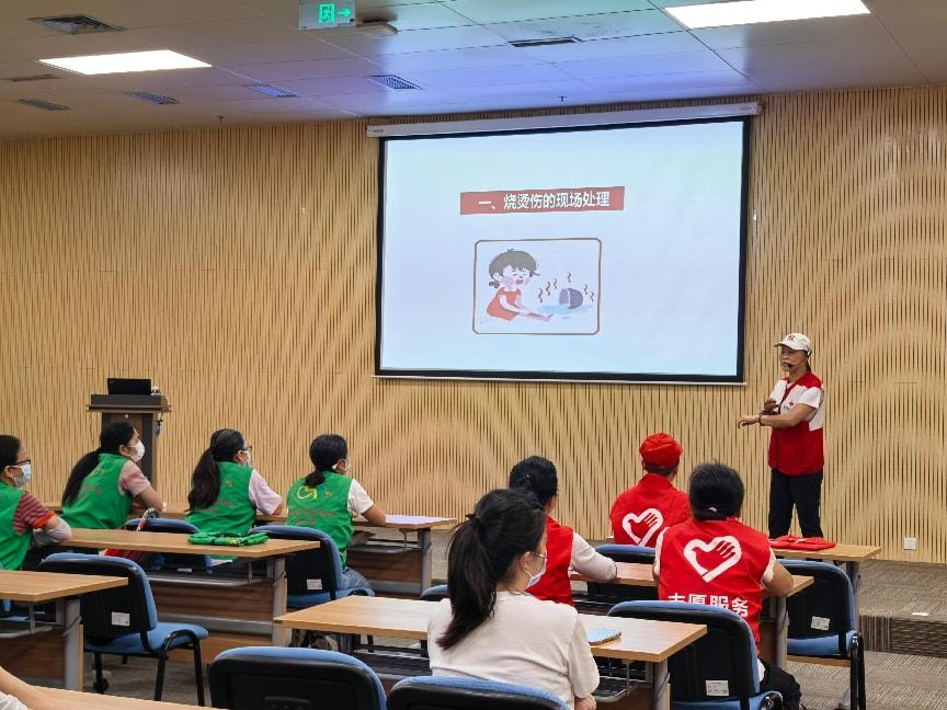 社工团队成功链接了东莞市红十字会的优质讲师资源,为志愿者们带来了一场实用的“中暑与烫伤防治急救培训”。专业讲师深入浅出地讲解了高温中暑的识别、预防措施和现场紧急救护知识,同时涵盖了常见烫伤的处理办法。讲师不仅进行了标准化的动作示范,还引导志愿者们仔细观察学习,确保每一个急救要点都精准到位。